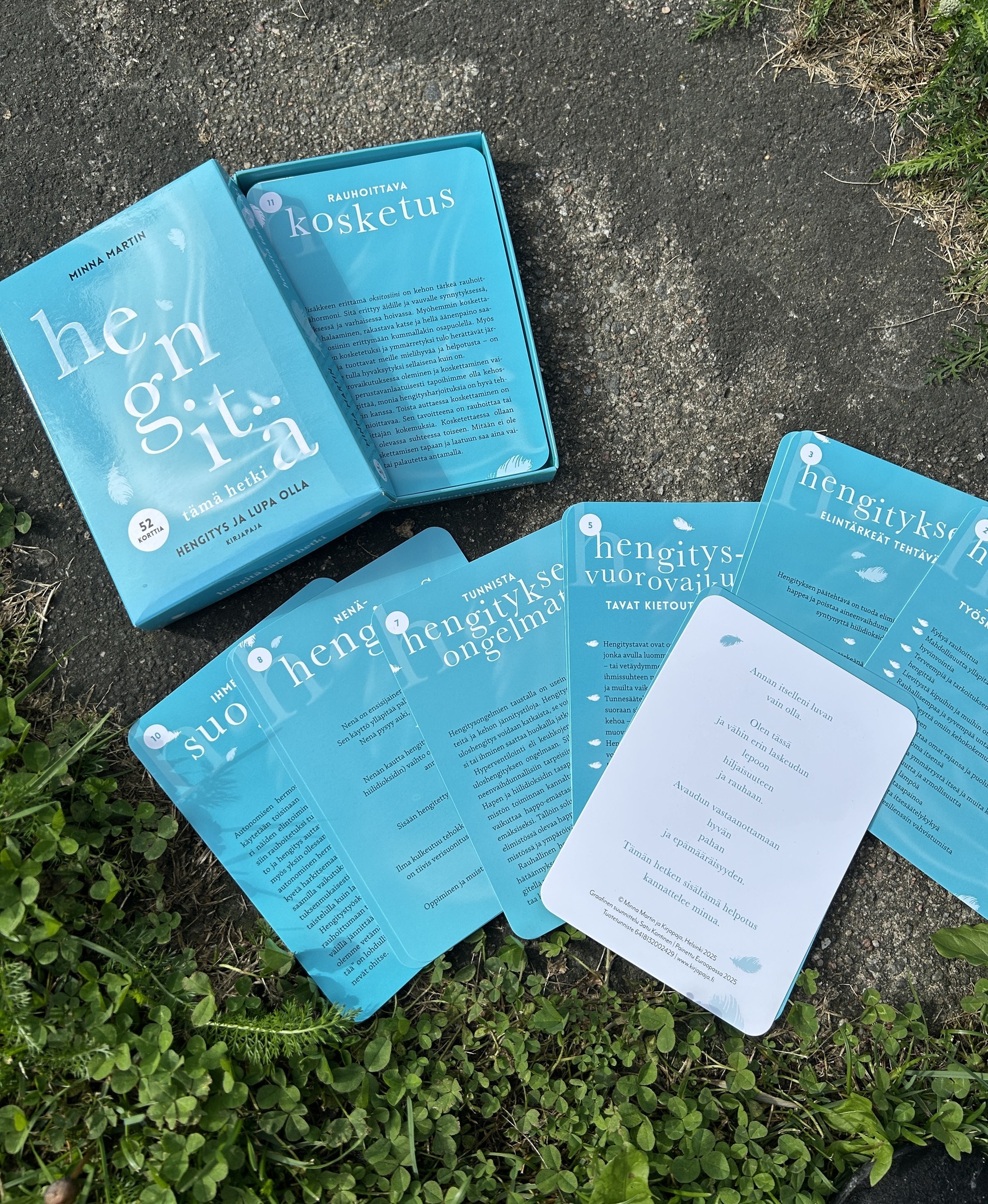 Hengitä tämä hetki -kortit tarjoavat toimivan apuvälineen rauhoittumiseen ja rentoutumiseen arjen keskellä. Vaikka olisimme ahdistuneita tai stressaantuneita, voimme vaikuttaa oloomme hengittämällä.