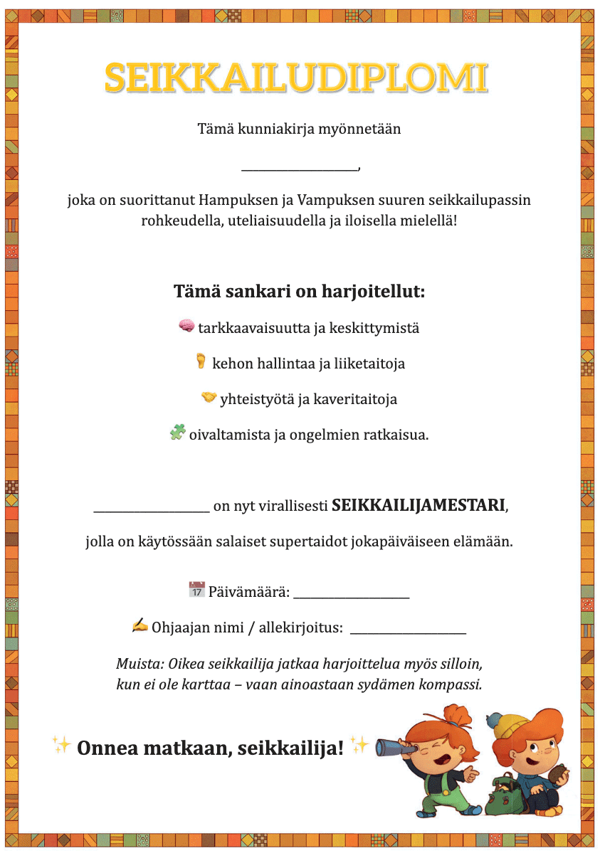 Ilmainen Seikkailudiplomi ja Seikkailutaitopassi varhaiskasvatukseen