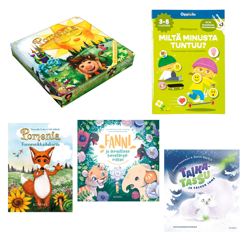 Tämä paketti kokoaa yhteen viisi innostavaa tuotetta, joiden avulla lapsi pääsee tutkimaan tunteita, kuuntelemaan tarinoita, leikkimään ja käyttämään mielikuvitustaan. Samalla syntyy arvokasta yhteistä aikaa aikuisen ja lapsen välille.