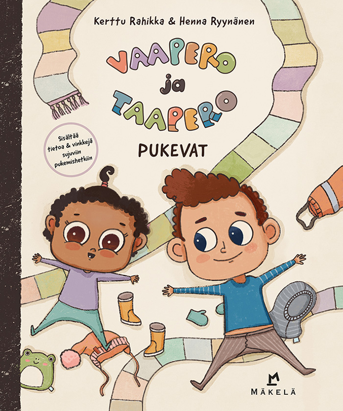 Sympaattisesti kuvitettu tarina ohjaa ja motivoi lasta harjoittelemaan arjen tärkeää taitoa. Kirjan päättää tieto-osuus, joka tarjoaa käytännön vinkkejä pukemissirkukseen ja tietoikkunoita yhdessä lapsen kanssa tutkittavaksi.