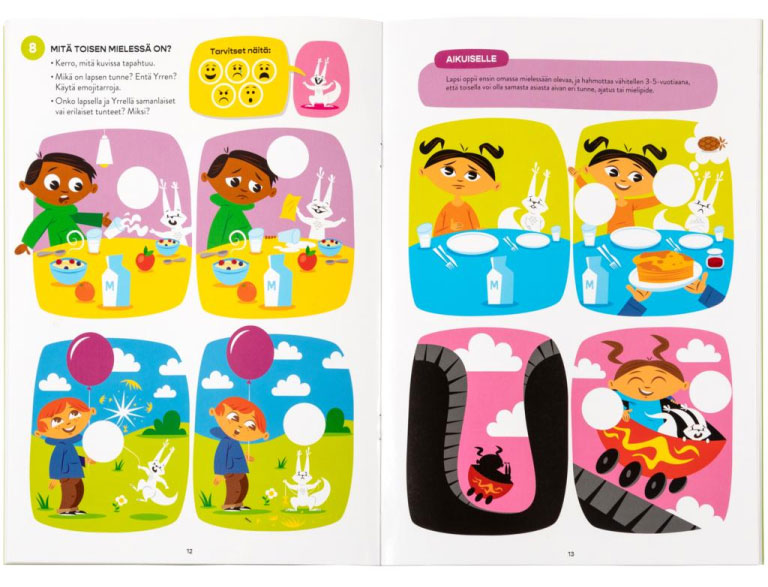 Tehtävät herättelevät lapsen itsetuntemusta ja lujittavat lapsen ja aikuisen luottamussuhdetta.