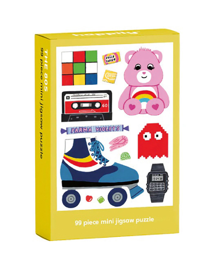 99 palan minipalapeli "In the 80's" on Holly Maguiren kuvittama ja sen koko on koottuna 10 x 14 cm.